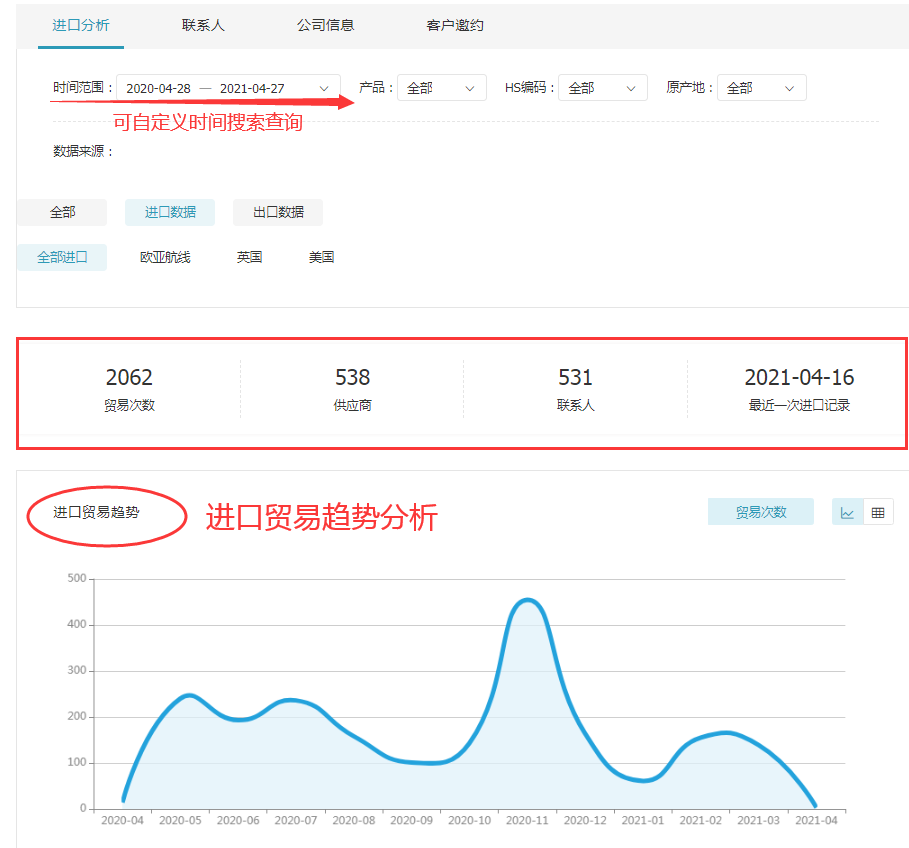 顺利获得K8凯发(中国)数据,外贸人可以清晰地看到采购商的进口交易信息(采购频率、采购数量,交易规模),判断开发价值,以此来选取目标客户,同时还能够获取目标地区贸易公司常用运货方式、包装方式,便于节约沟通时间,降低开发成本。