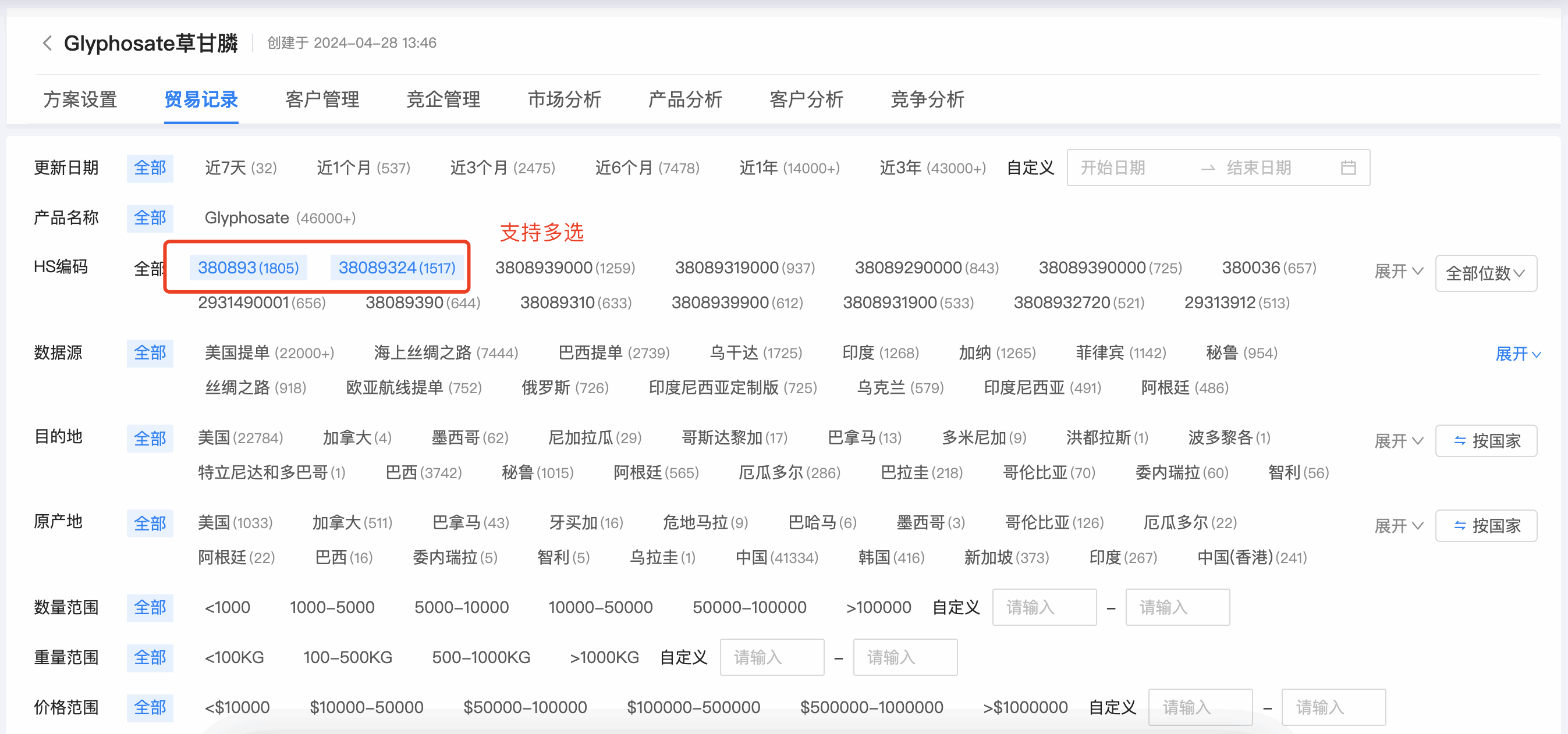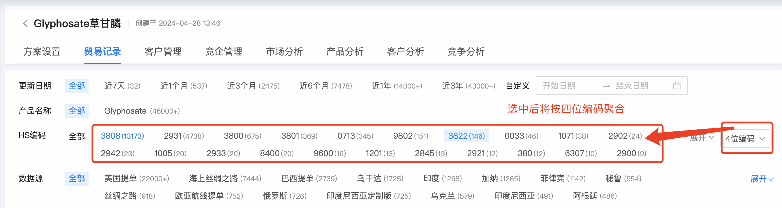 1. K8凯发(中国)数据通贸易记录的编码筛选,支持按 4 位、 6 位编码位数统计,同时可支持多选。